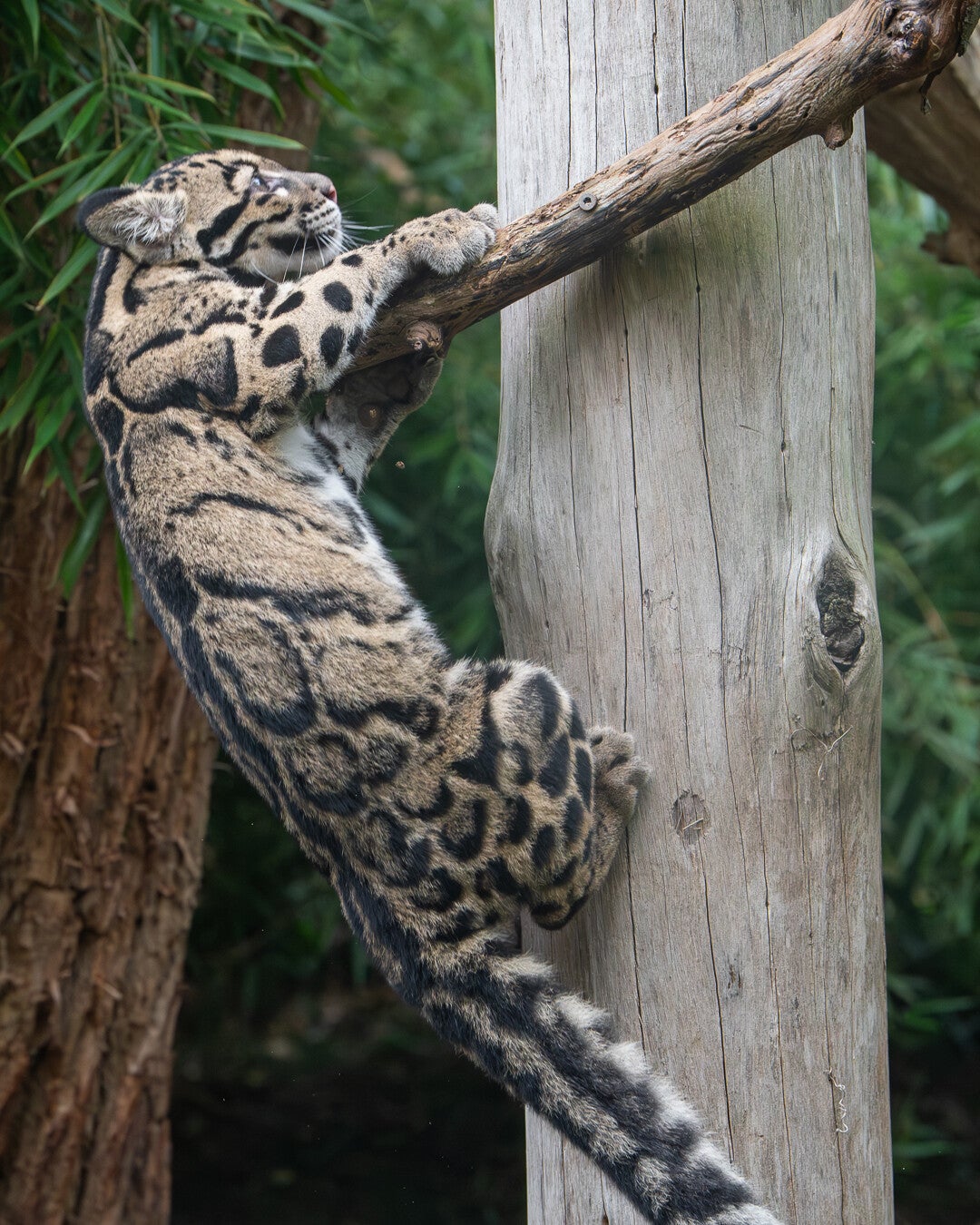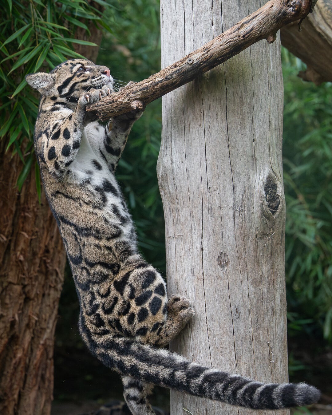 Ik was bij de tijgers, toen later er iemand bij kwam. Die vertelde dat de nevels eten hadden gehad en even actief waren. Ik dacht *Ja, jammer dan gemist!*, maar ik had het ook druk bij de tijgers. Na een tijdje werd het daar rustiger en ben ik weggelopen richting de nevels. Om daar even te kijken wat het volgende plan was. Het was rustig toen ik aan kwam, maar al heel snel zag ik beweging bij de panters. Ze werden weer actief! Ze waren weer heel druk. Heerlijk aan het spelen, klimmen, rennen, springen en stoeien met elkaar! Totaal niet meer verwacht!